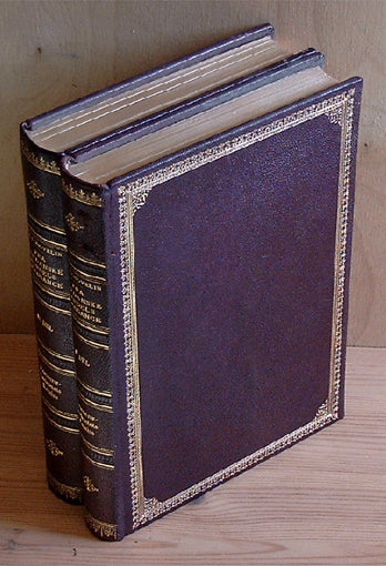 Noter: Hellæderbind. Fuld guldsnit, stor 8vo. Lille skade på ryg af bind 1. Npt