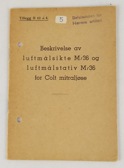 Beskrivelse av luftmålsikte M/36 og luftmålsstativ M/36 for Colt Mitraljøse