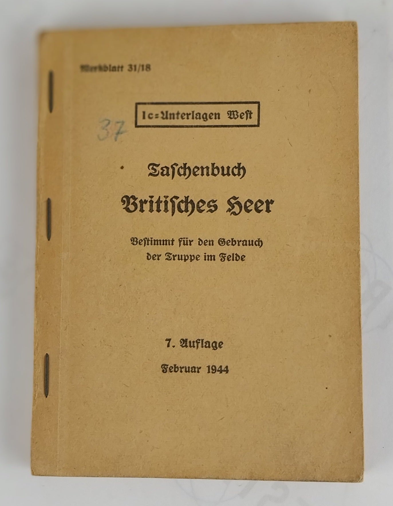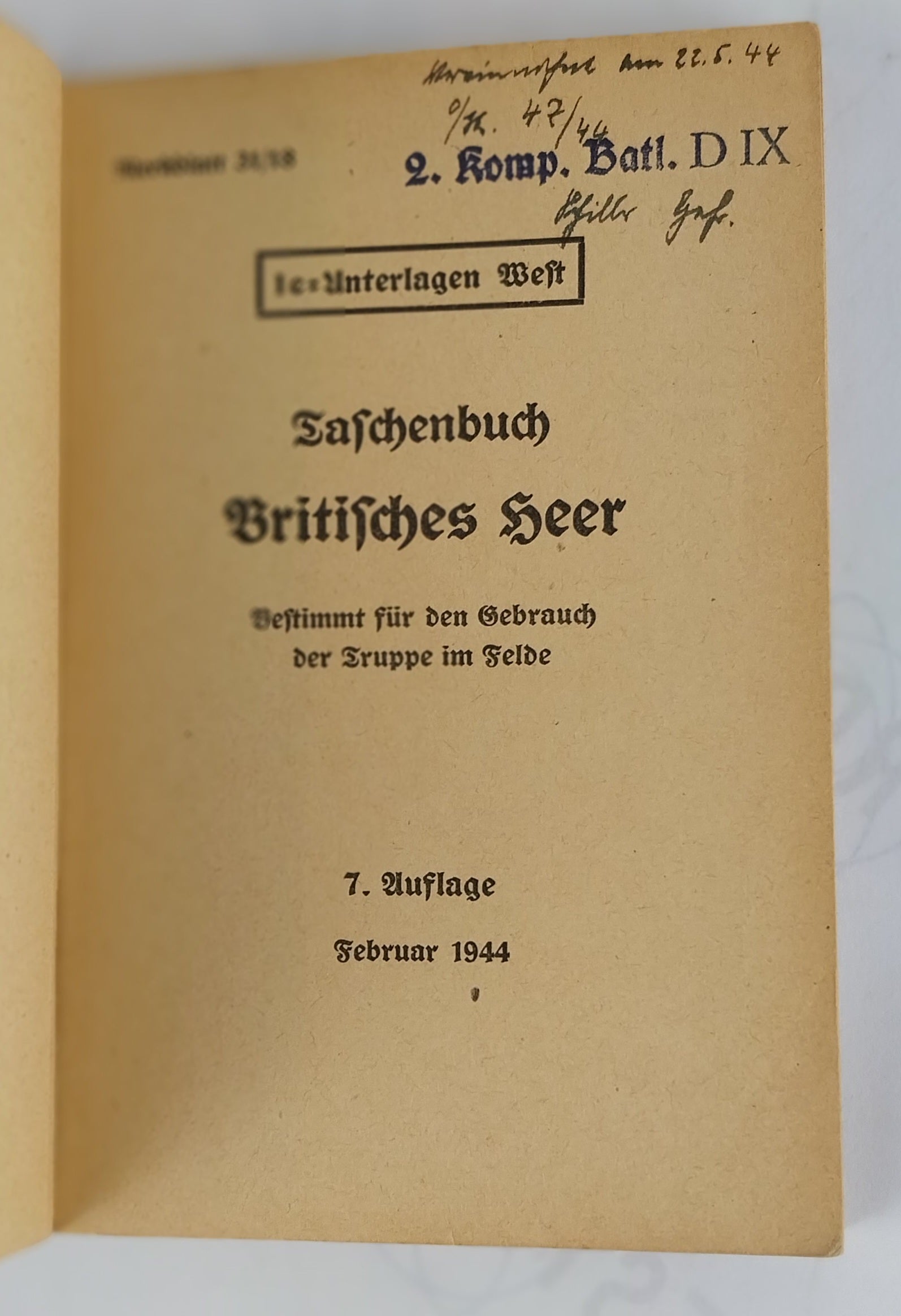 Merkblatt 31/18, 1c-Unterlagen West. Stamped: 2. Komp. Batl. D IX